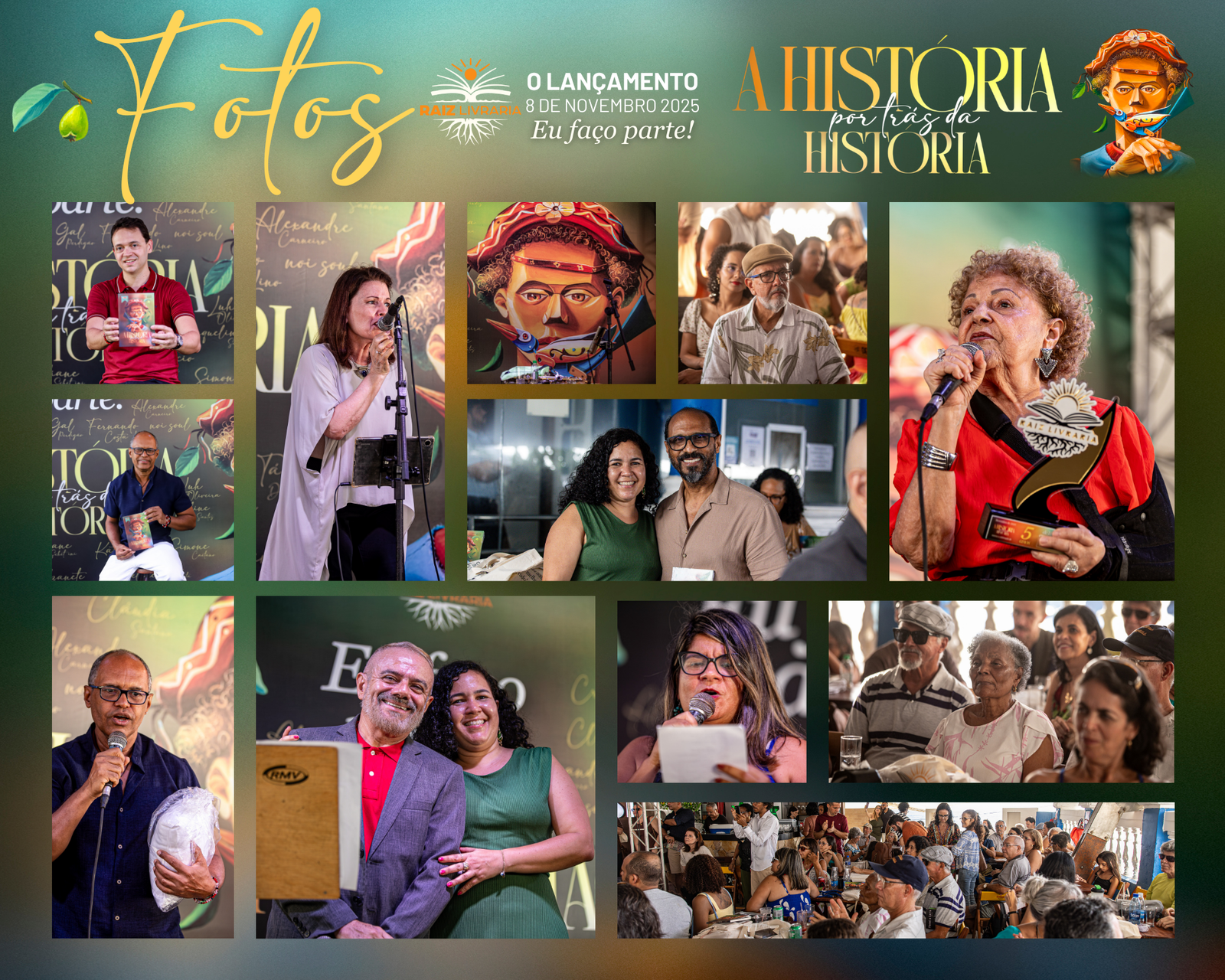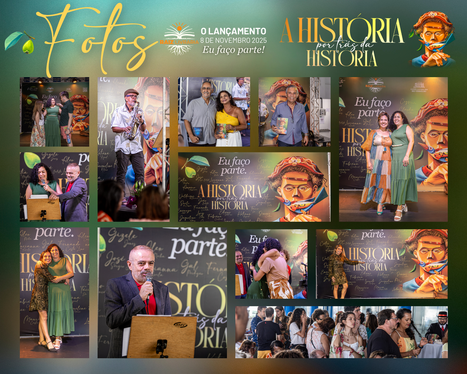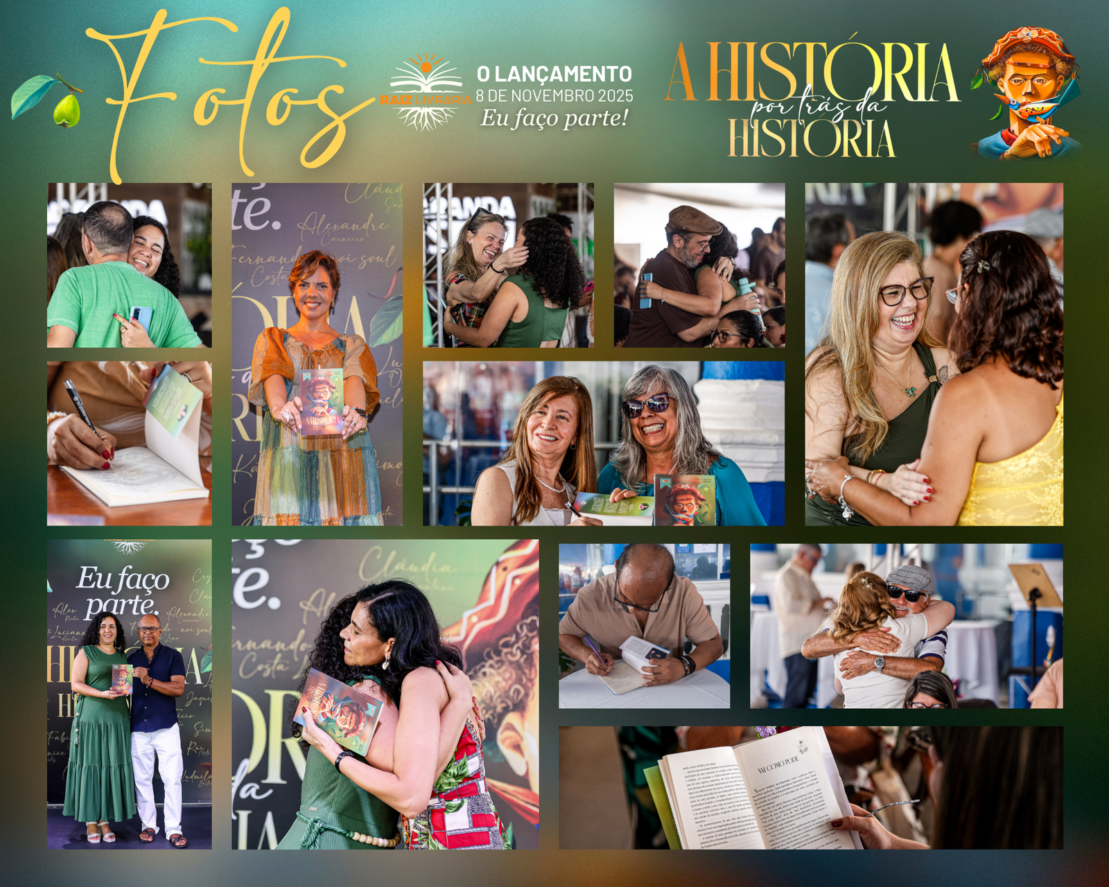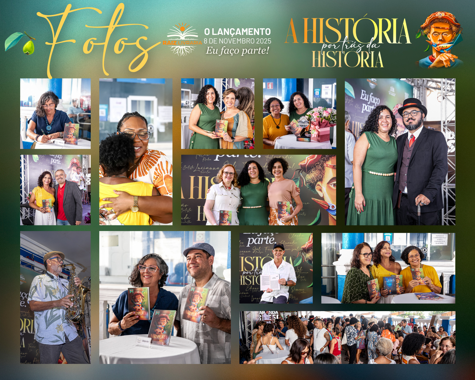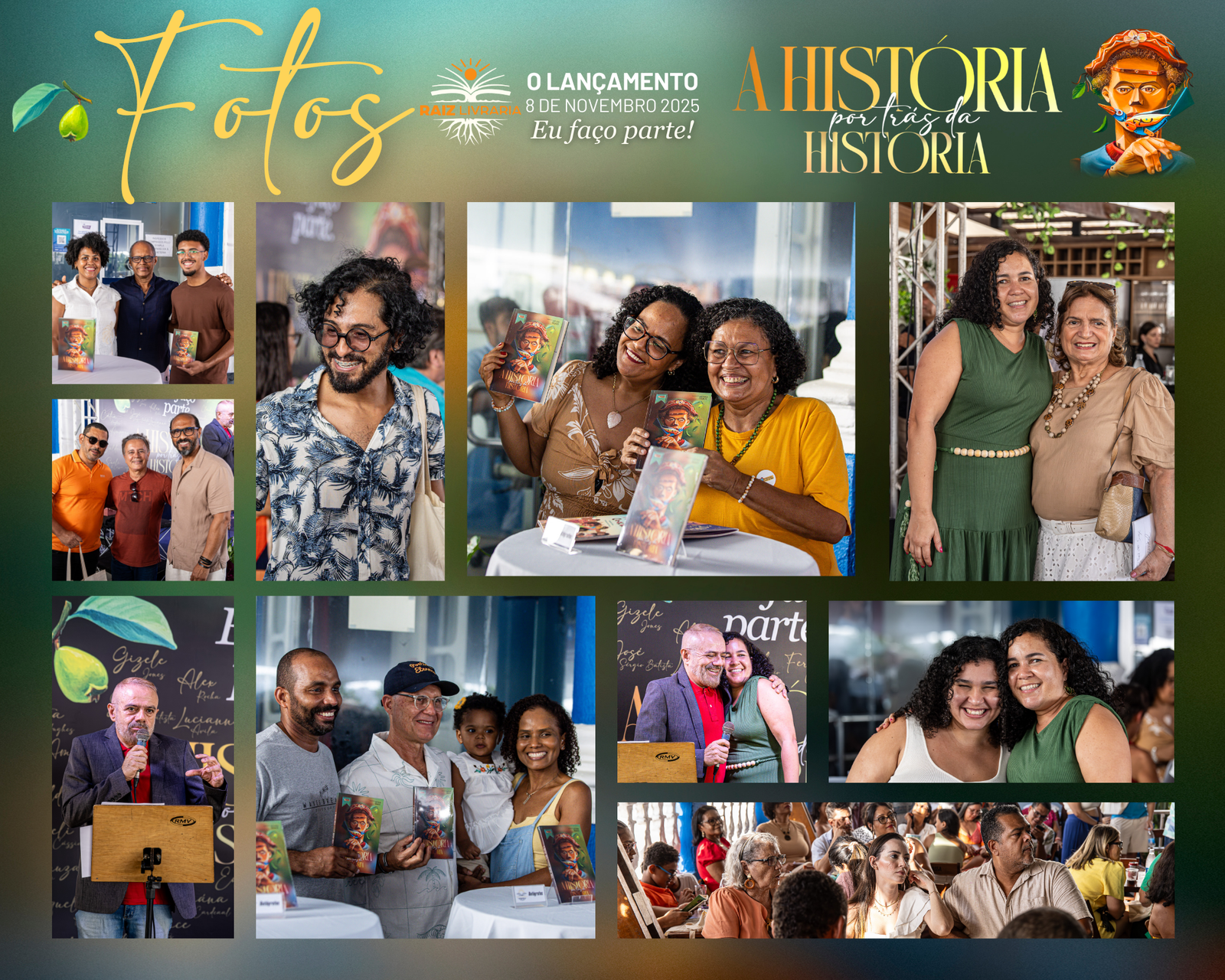 No dia 8 de novembro de 2025 a Raiz Livraria fez história e marcou recordes: mais de 300 pessoas se abraçando e sorrindo num espaço cultural, para o lançamento do livro A história por trás da história, que aconteceu na varanda do Teatro Sesi, no Rio Vermelho em Salvador.