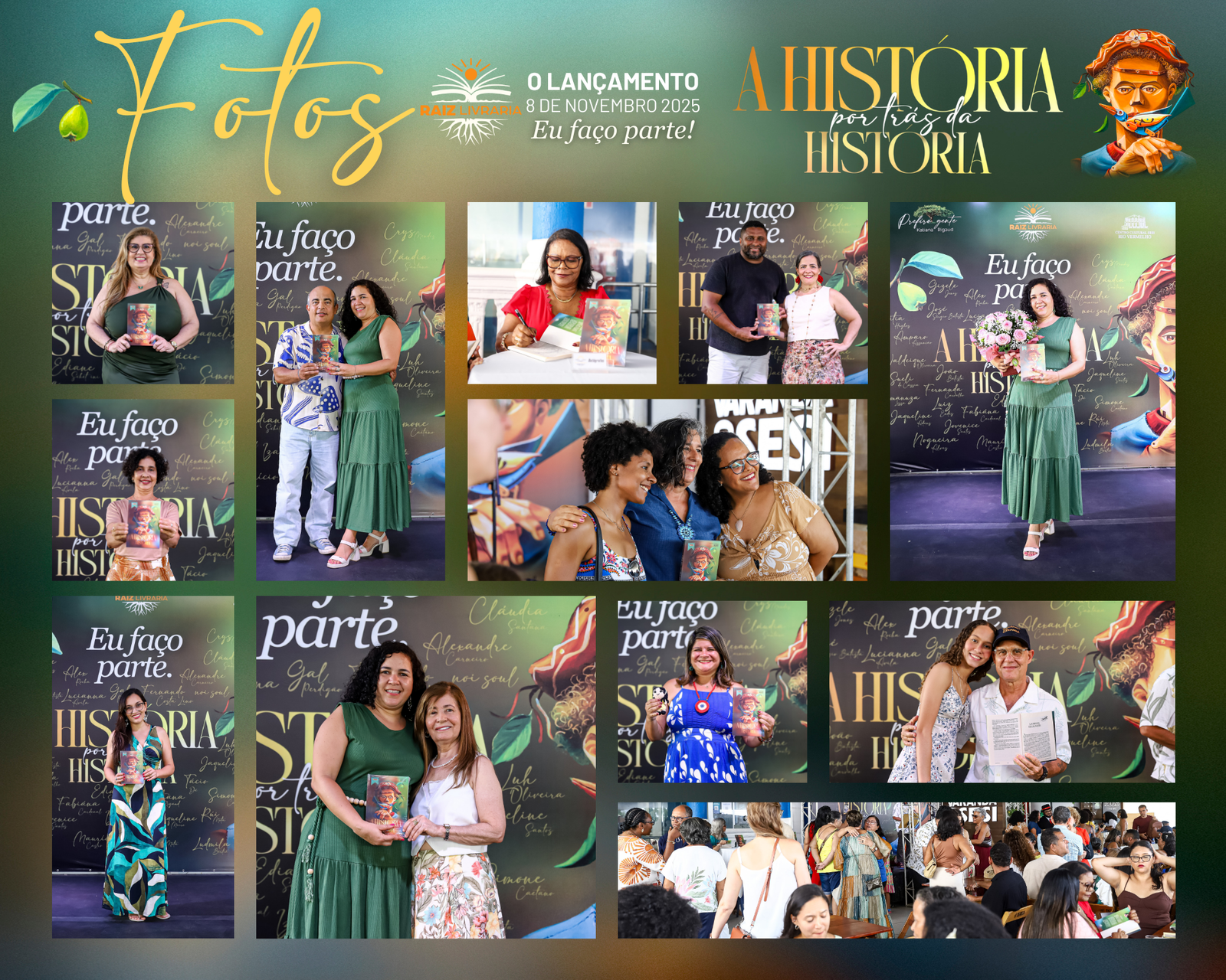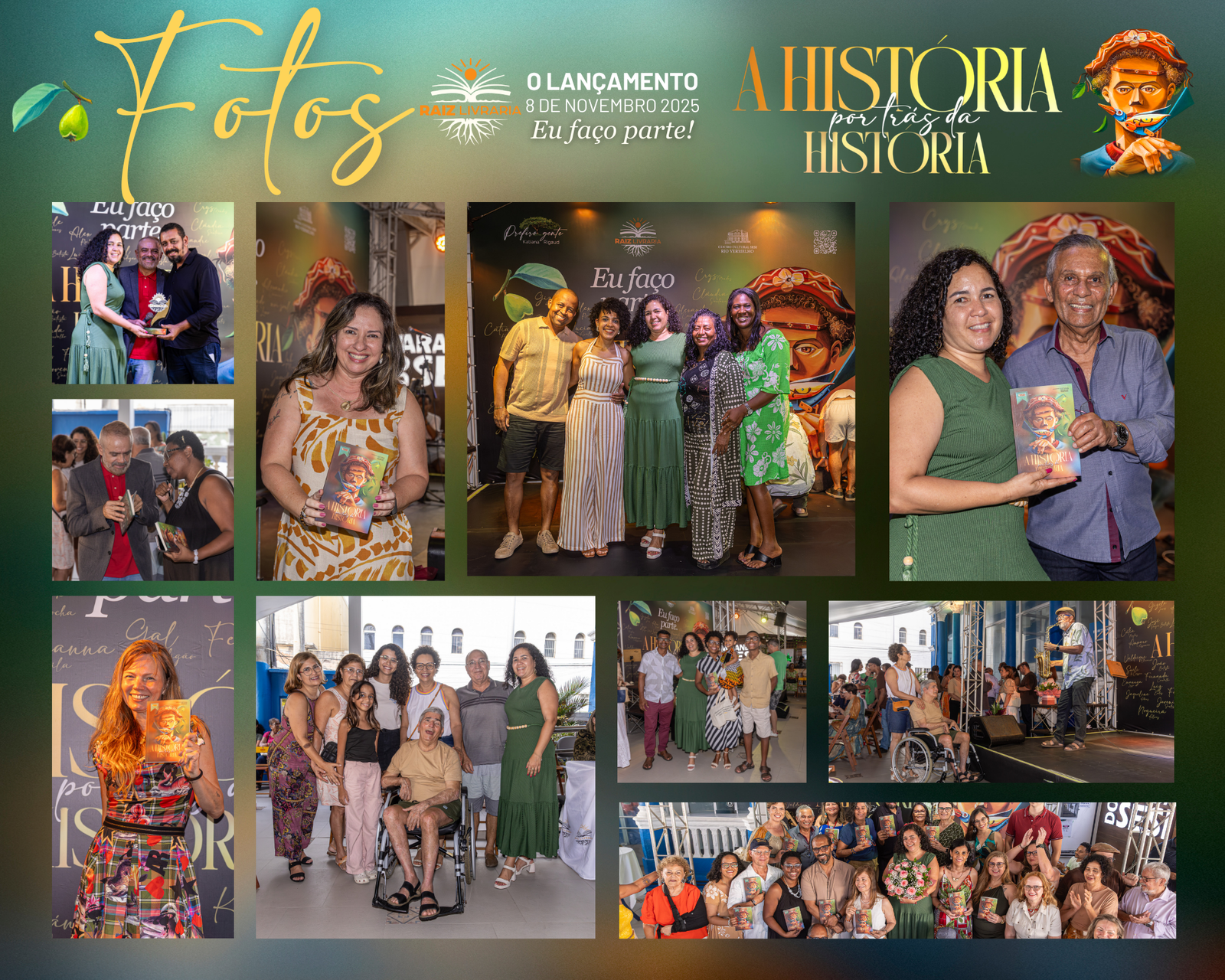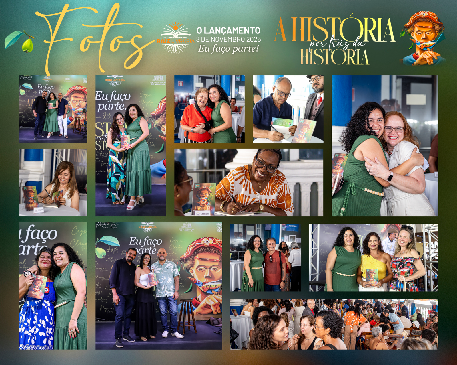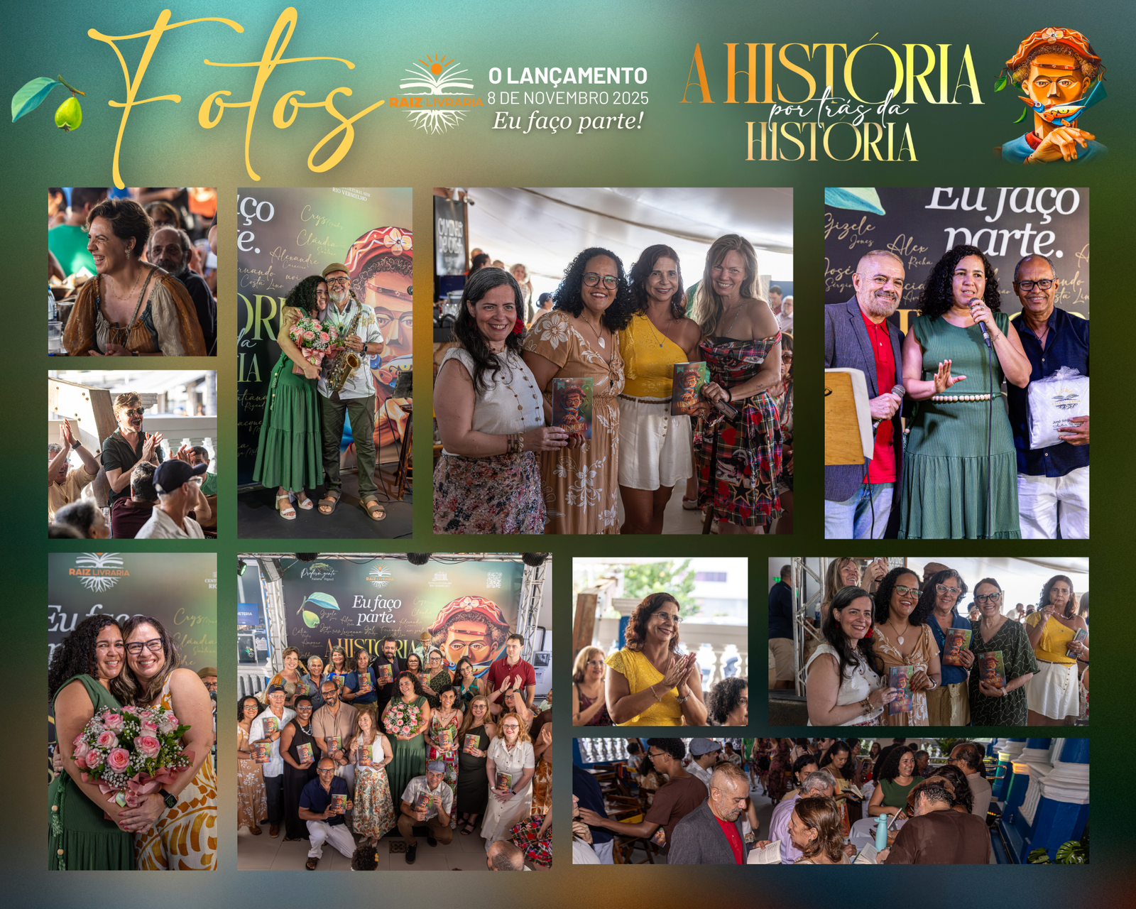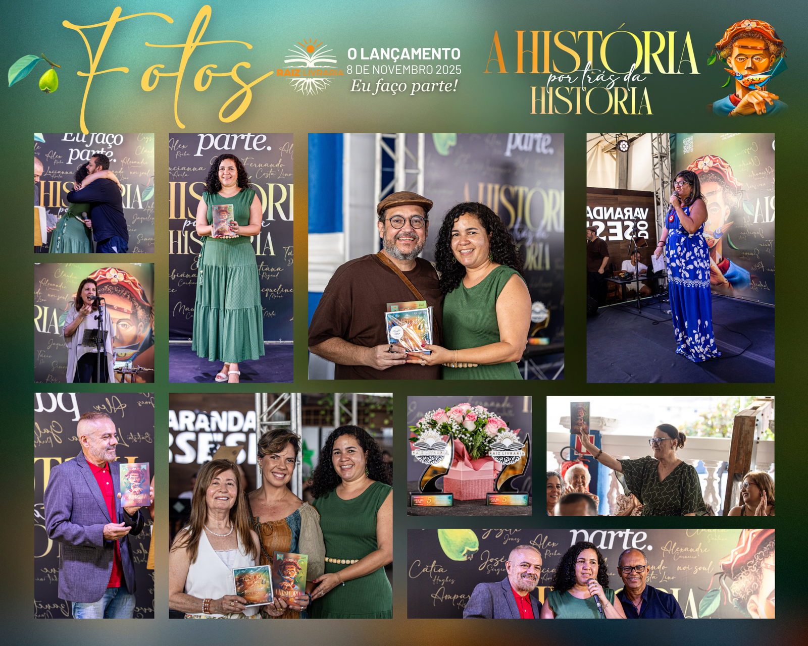 No dia 8 de novembro de 2025 a Raiz Livraria fez história e marcou recordes: mais de 300 pessoas se abraçando e sorrindo num espaço cultural, para o lançamento do livro A história por trás da história, que aconteceu na varanda do Teatro Sesi, no Rio Vermelho em Salvador.